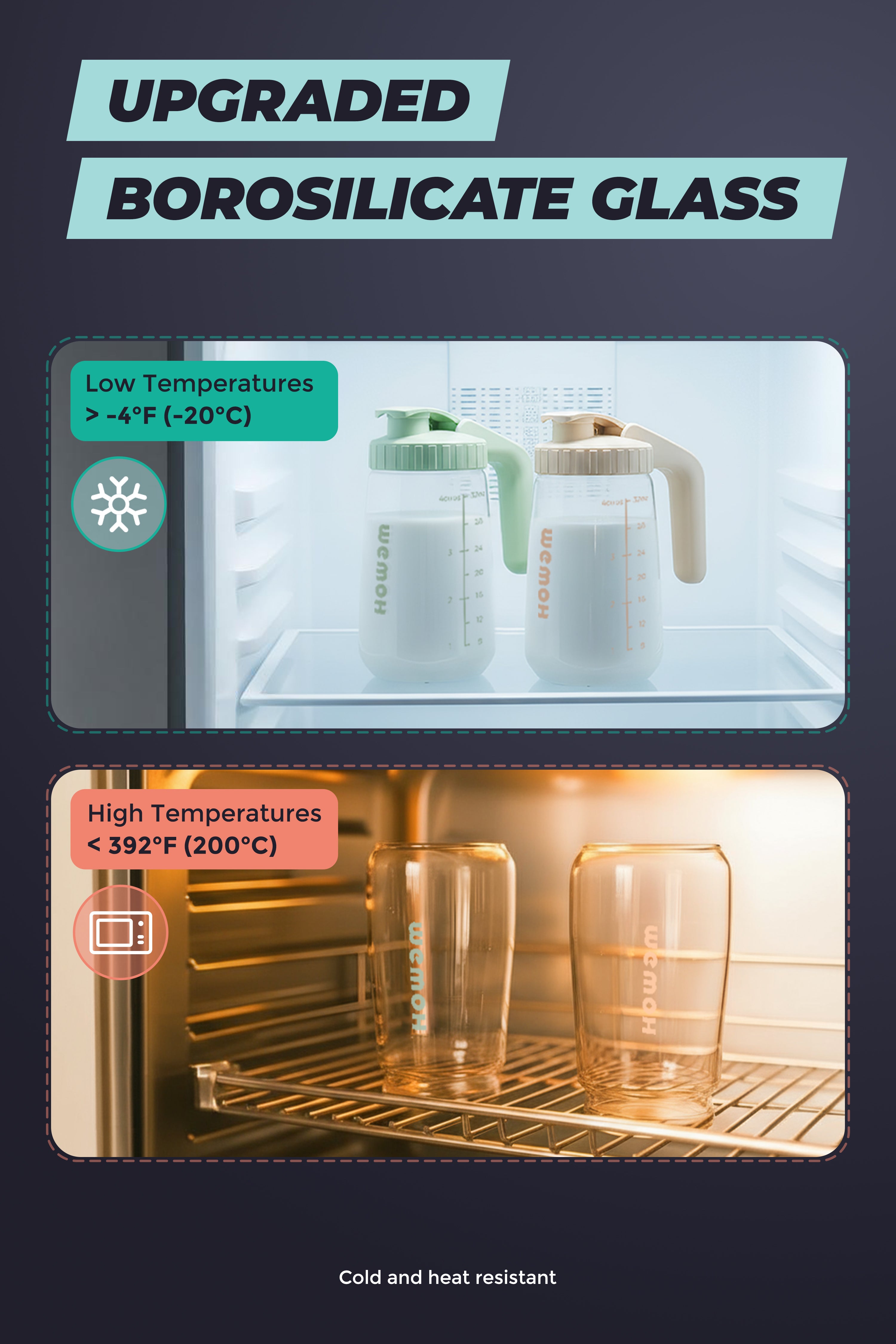 Simplify your milk storage — designed for real moms. The WEMOH Breast Milk Pitcher is thoughtfully created for breastfeeding moms who want a safe, easy, and stylish solution. Made from premium borosilicate glass, it stores up to 32oz — the equivalent of four 8oz milk bags — while fitting neatly in your fridge. With a leak-proof lid and wide-mouth design, you’ll pour and clean effortlessly, every time.